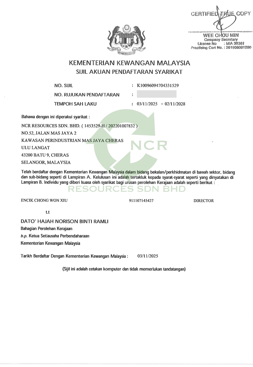 It will run for a certain hours or days at our selected facility. For detailed information on dates and more, please follow our Facebook – NCR Resources Sdn Bhd. Or subscribe to our newsletter at www.ncrresources.com to be the first to know about our latest activities!